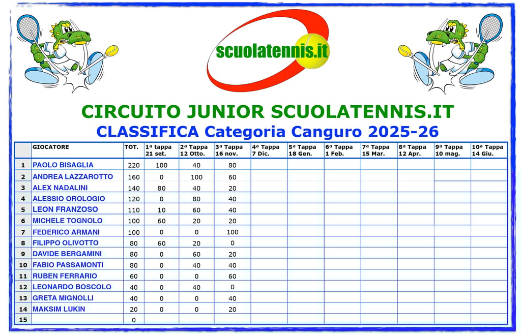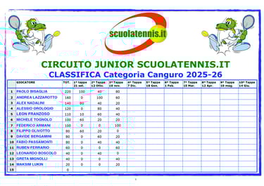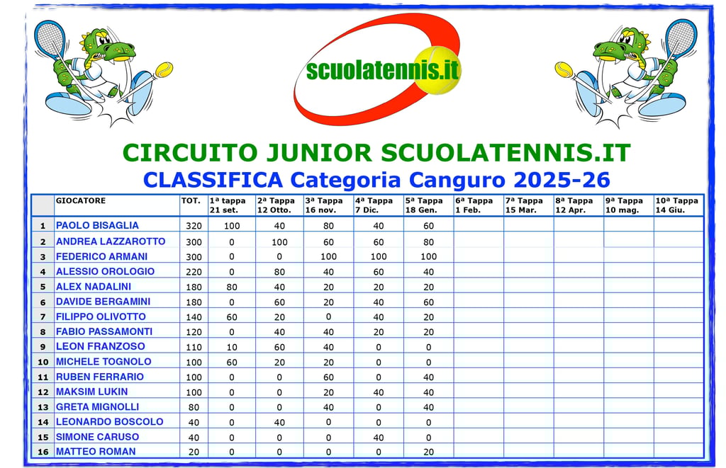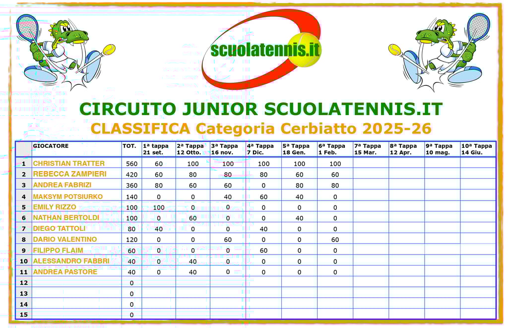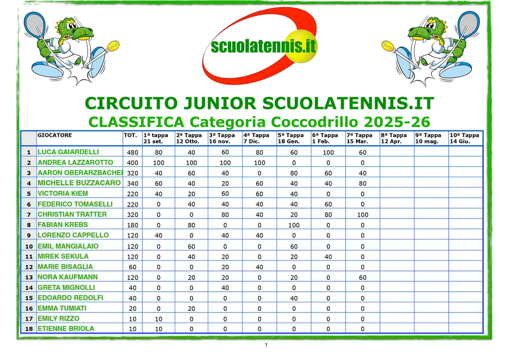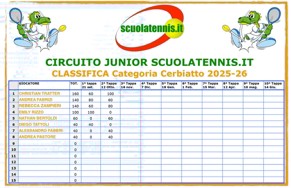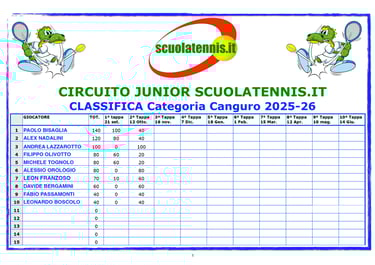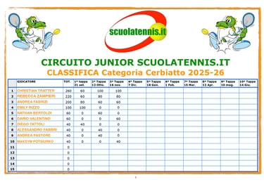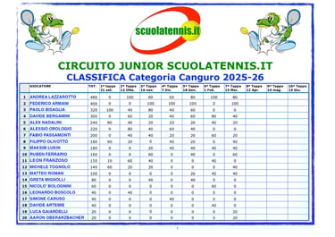 Classifiche aggiornate torneo per torneo. BOLZANO