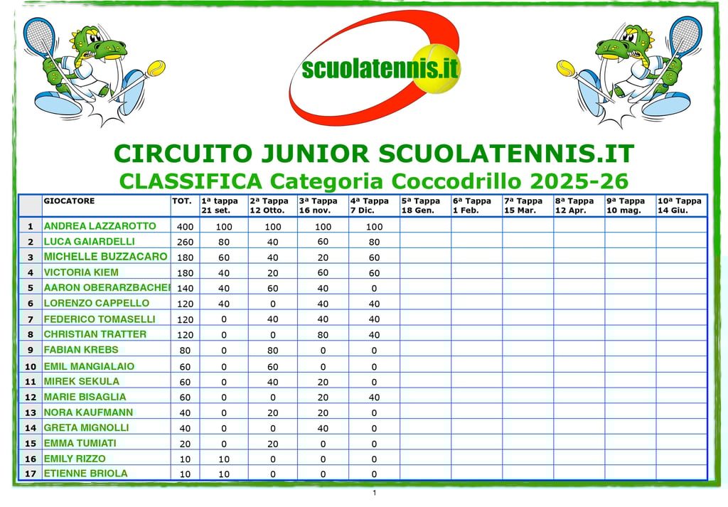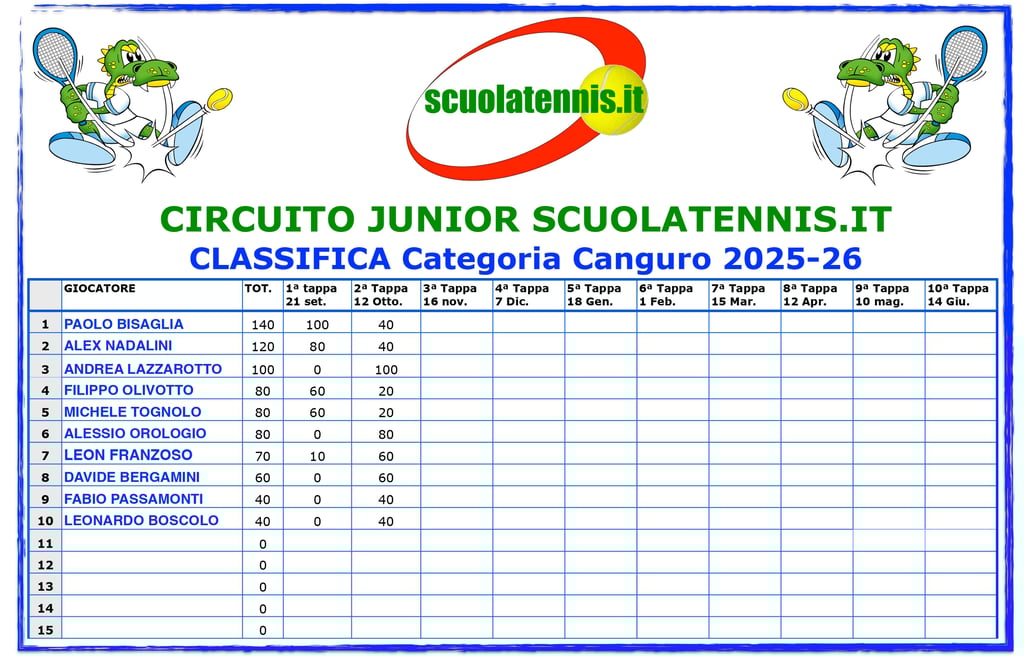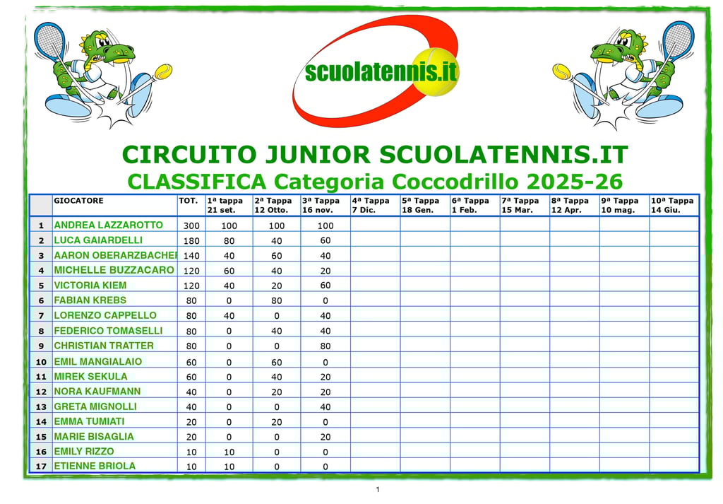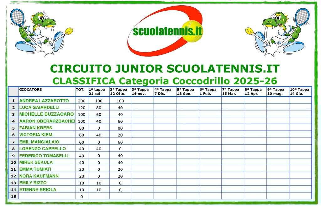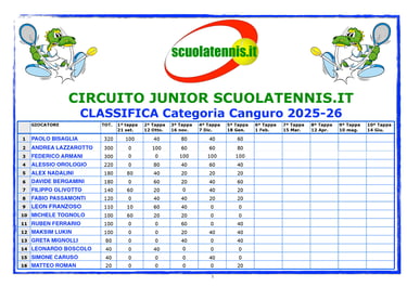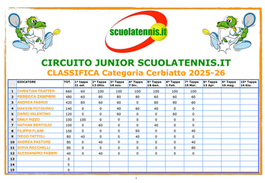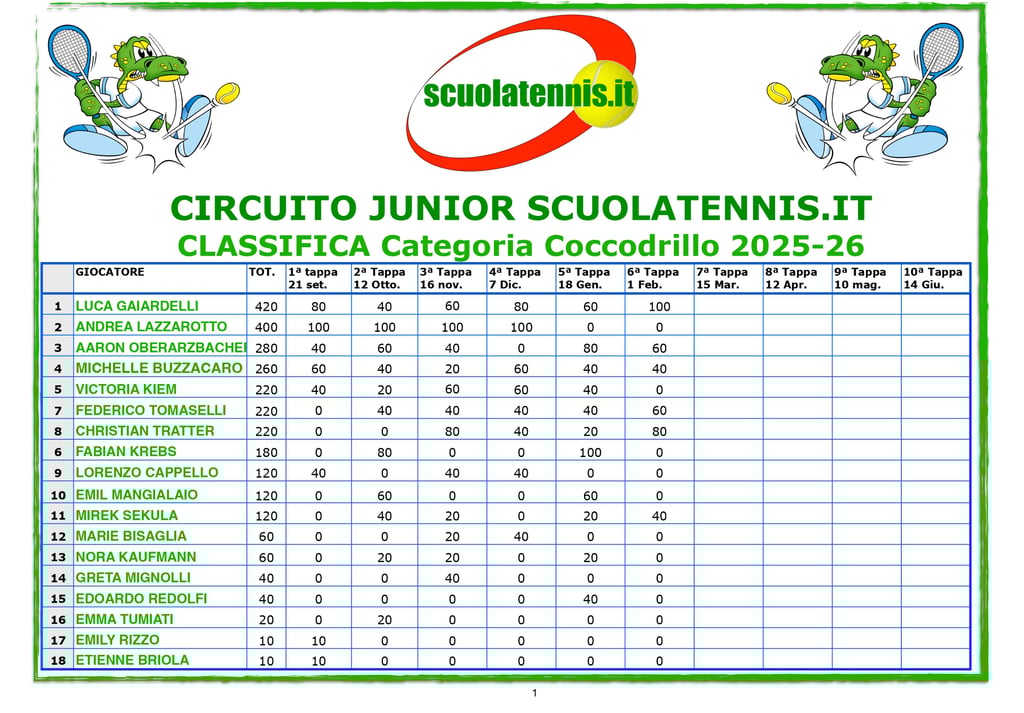 Classifiche aggiornate torneo per torneo. BOLZANO