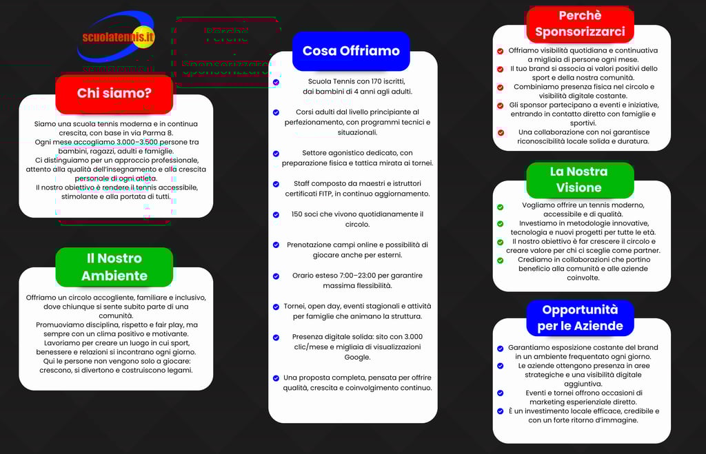 Collaboriamo con aziende che vogliono visibilità continua in un ambiente sano, sportivo e familiare.